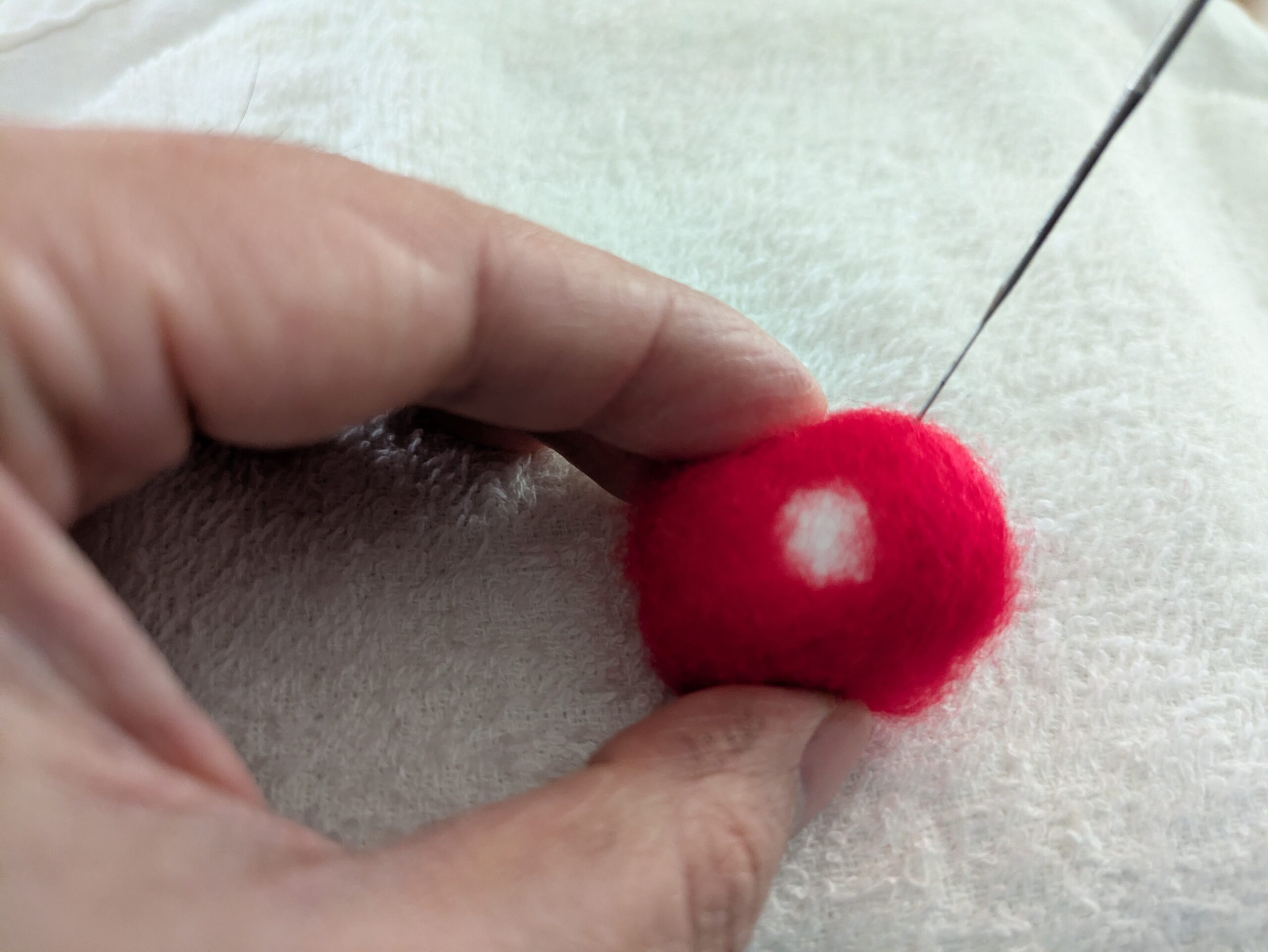 Step 5: 手で軽くコロコロ&ニードルで仮止め