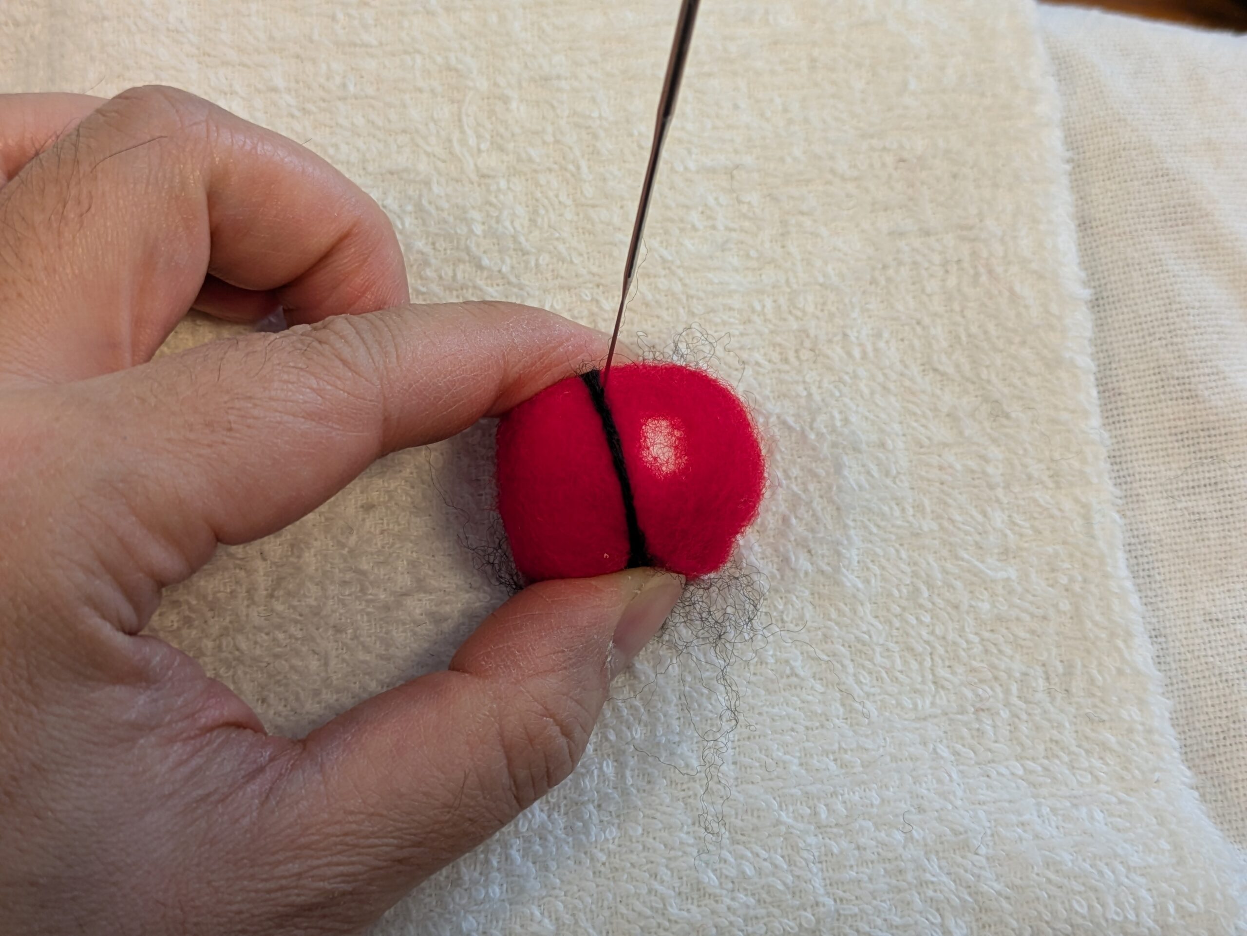 ニードルで刺しすぎると、中の紙粘土が崩れて、細かい白い粉が出てきてしまいます。あくまで仮止めです。