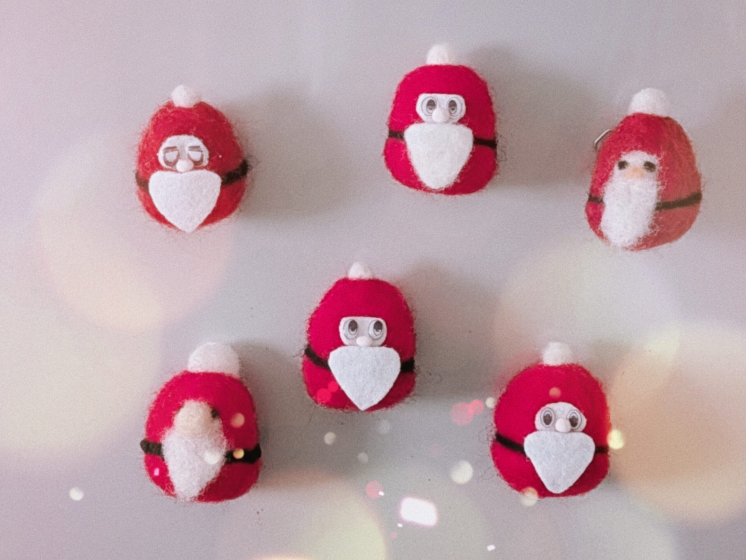いかがでしたか?紙粘土を芯に使うことで、しっかりとした可愛いサンタ人形マグネットができましたね。今回は簡単に顔部分と髭をフェルトにしましたが、羊毛フェルト(アクレーヌ)のみで仕上げても素朴で可愛い人形が作れます。